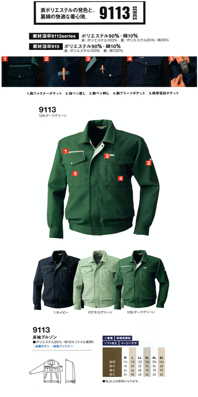 9113 長袖ブルゾン