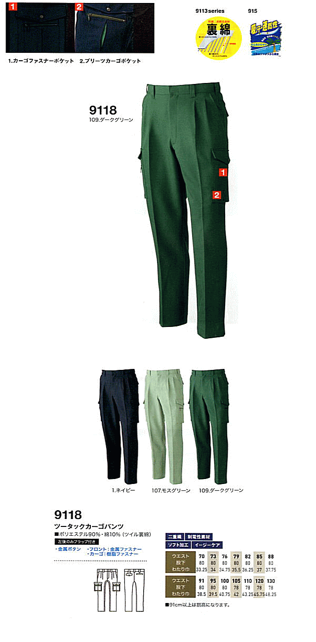 9118 ツータックカーゴパンツ 素材 ポリエステル90%・綿10%