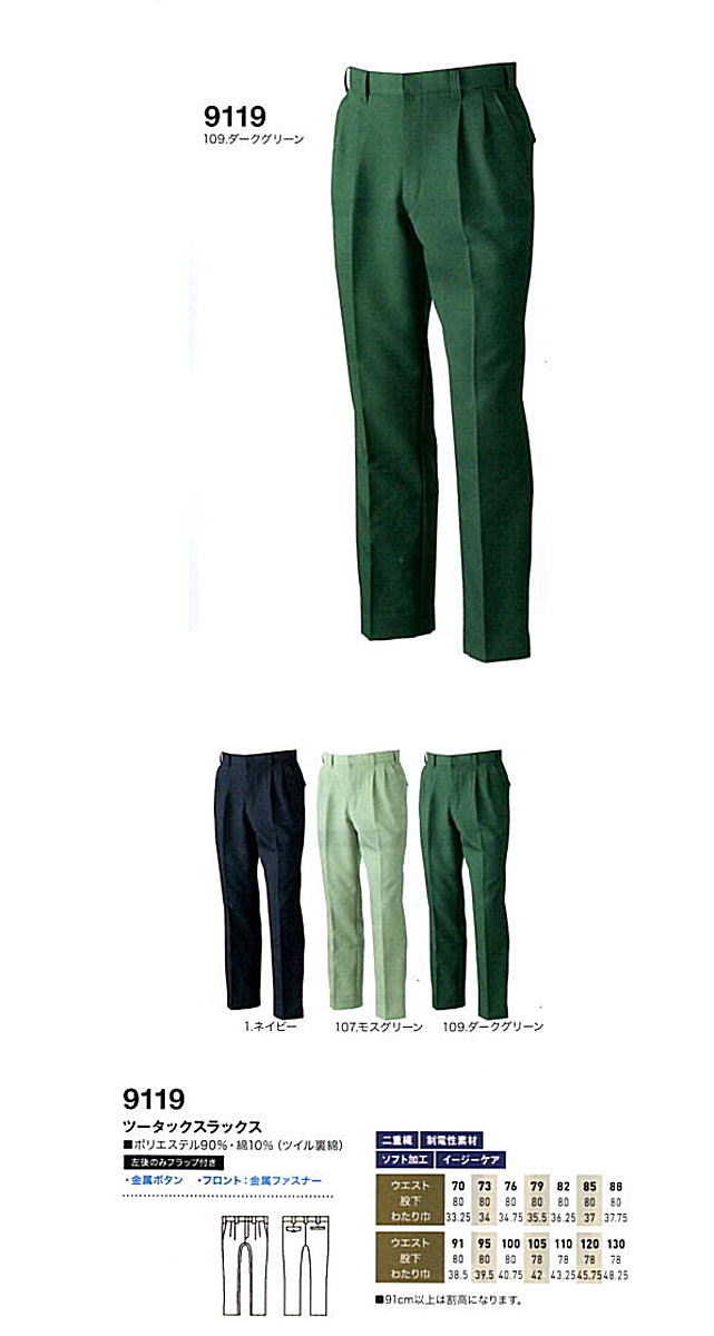 9119 ツータックスラックス 素材 ポリエステル90%・綿10%