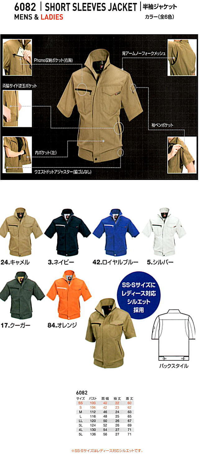 6082 半袖ジャケット (ユニセックス)