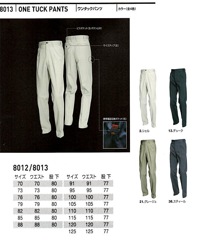 8013 ワンタックパンツ 素材 綿100%