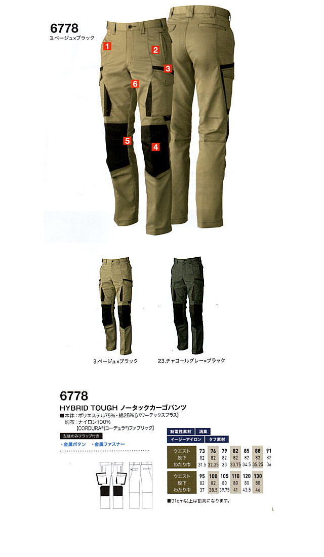 | 6778 ノータックカーゴパンツ 素材 ポリエステル75%・綿25% サイズ73cm~130cm カラー 2色 本体価格 販売価格 ¥3,915円(税別)~ ※91cmから割高です ※メーカー在庫数限りです。 |